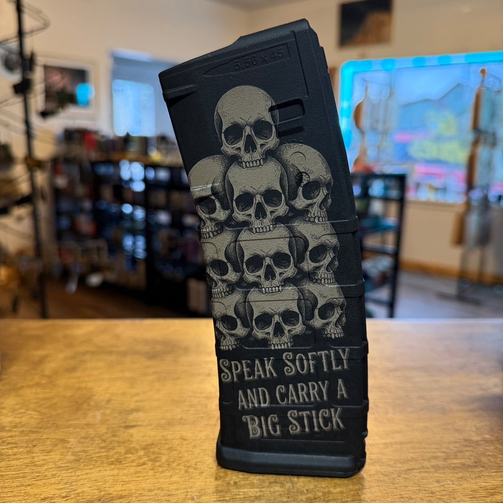 This digital LightBurn file features a precision-designed Speak softly and carry a big stick design tailored for .223 30-round PMAGs. Purchasing grants you the file along with a commercial license to produce and sell finished products using the design. Please note, redistribution or resale of the file itself is strictly prohibited. Ideal for professionals seeking a distinctive, high-quality graphic to enhance tactical gear or custom magazines with legal compliance.