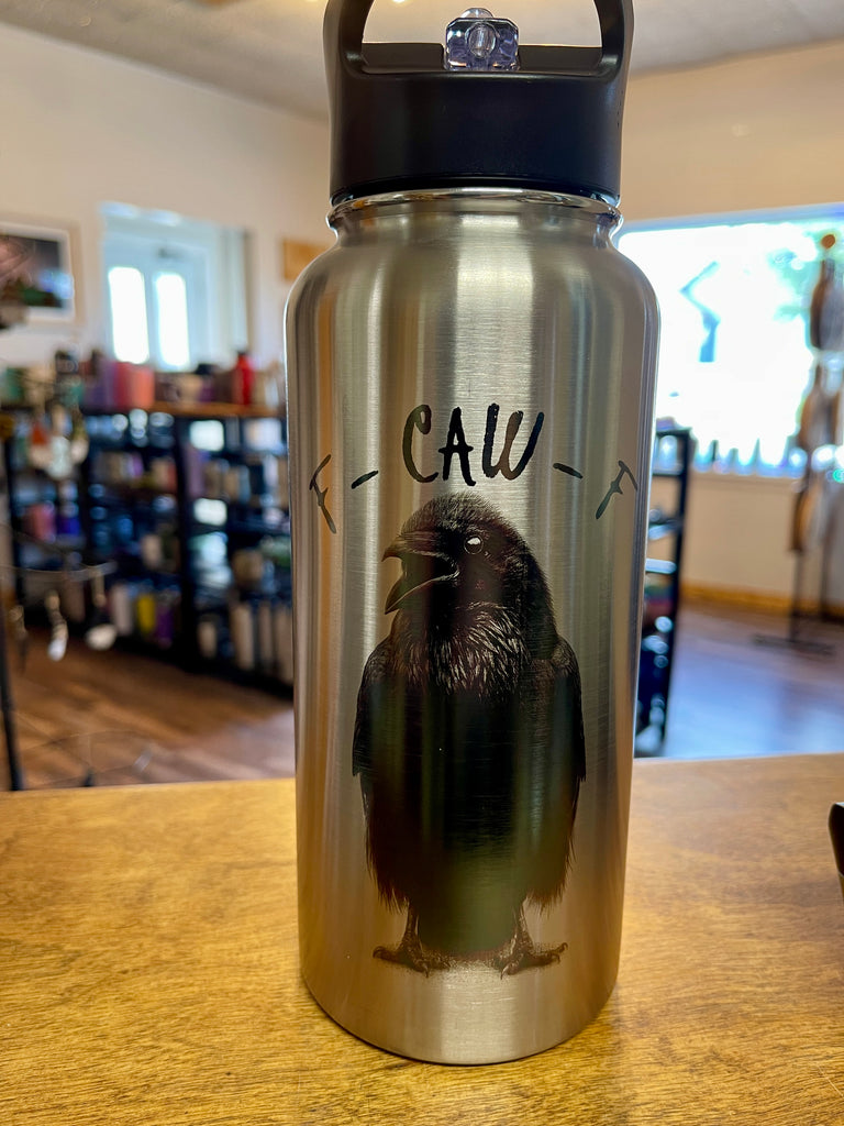 32 oz stainless steel insulated water bottle with "F-CAW-F” design. These sturdy water bottles come with both a straw cap and a chug style cap. If you would like your name on the bottle please enter it in the order notes.